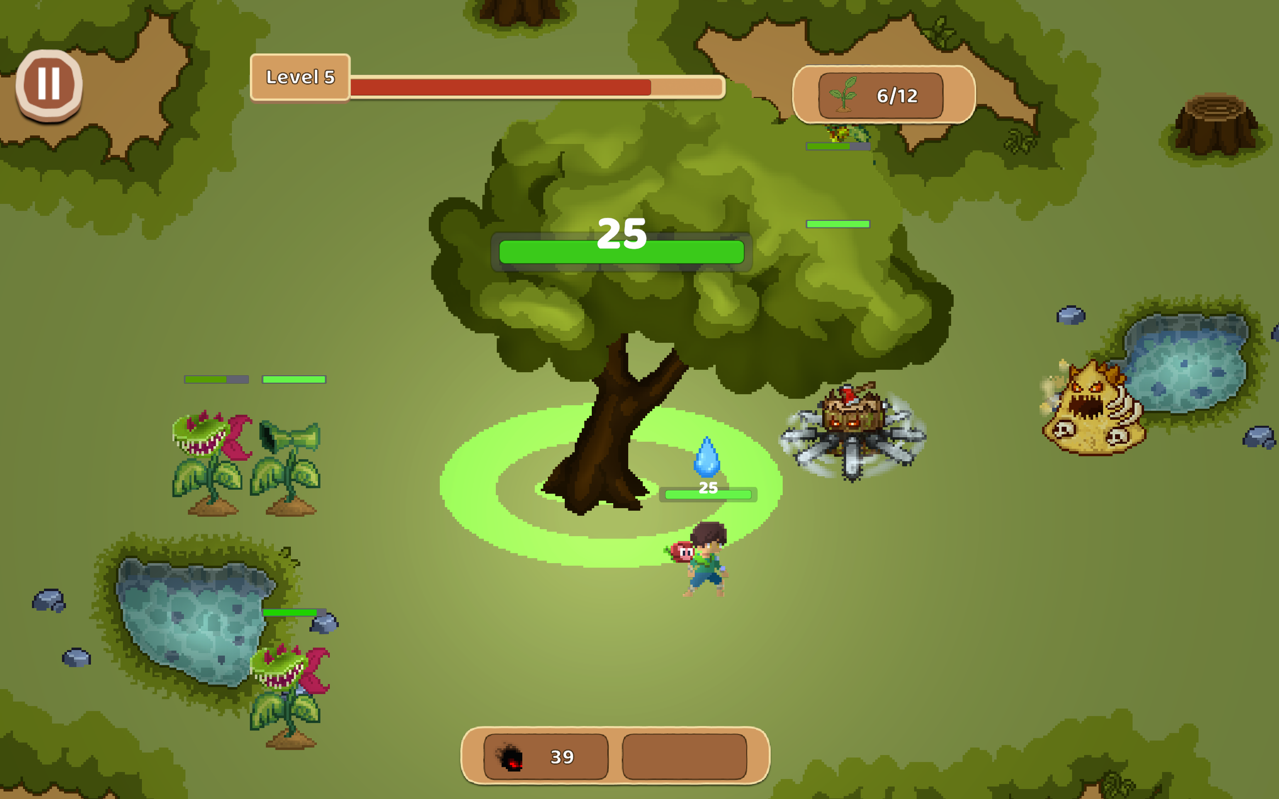 Achei bem divertido. Tentar bolar uma estratégia com as plantas e os upgrades enquanto atacar, desvia, planta e pega água dá uma experiência frenética mas bem divertida quando pega a manha. Ótimo trabalho!